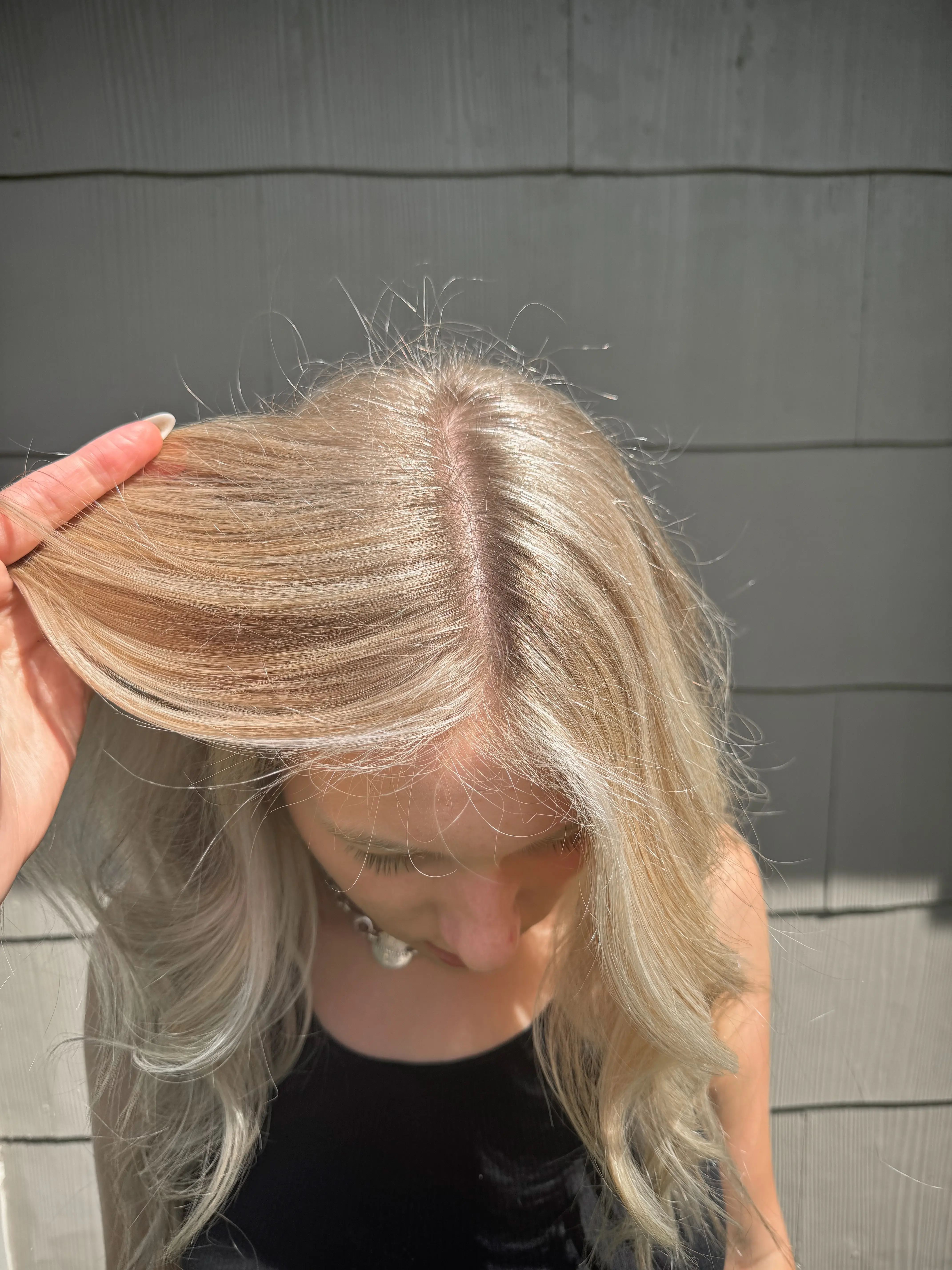 Top and side sections of your hair, where you'll see the most dimension. Toner and style included