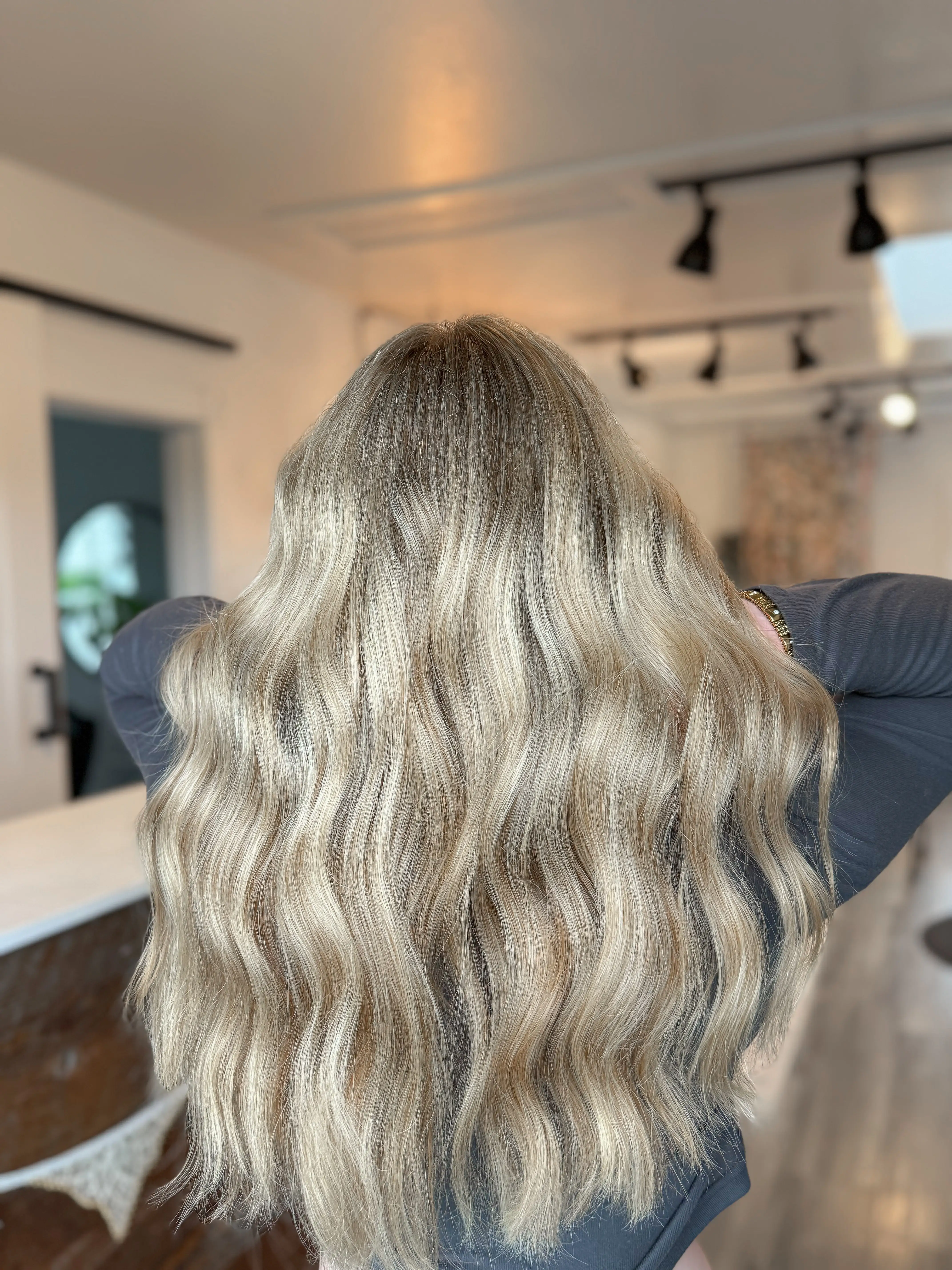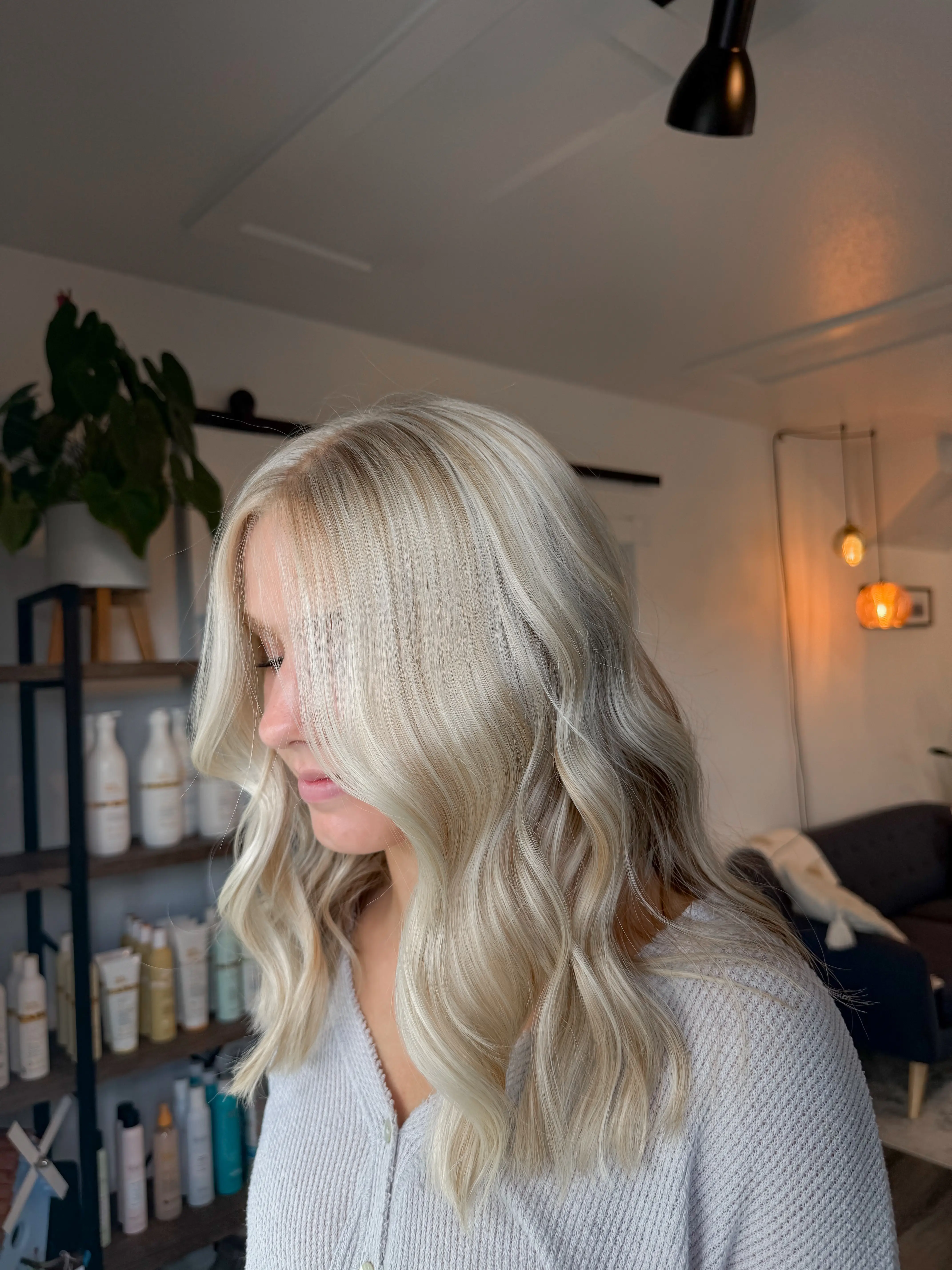 Full head of highlights, toner and style. Great for clients who want more brightness all around.